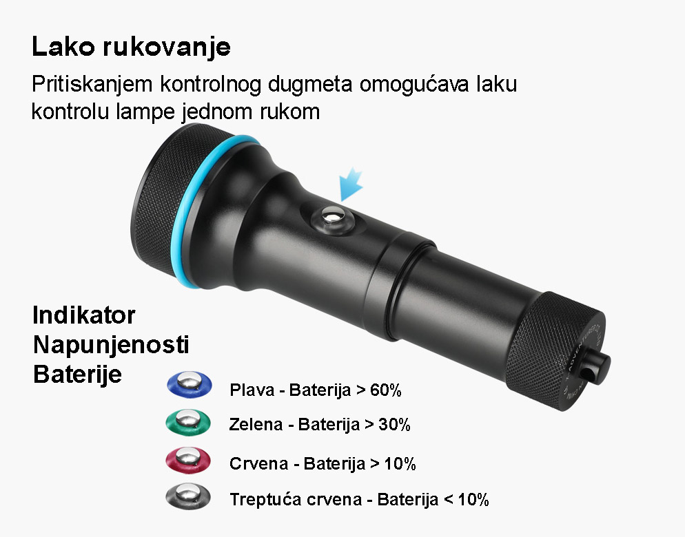 Pritiskanjem kontrolnog dugmeta omogućava laku kontrolu lampe jednom rukom